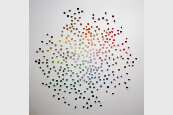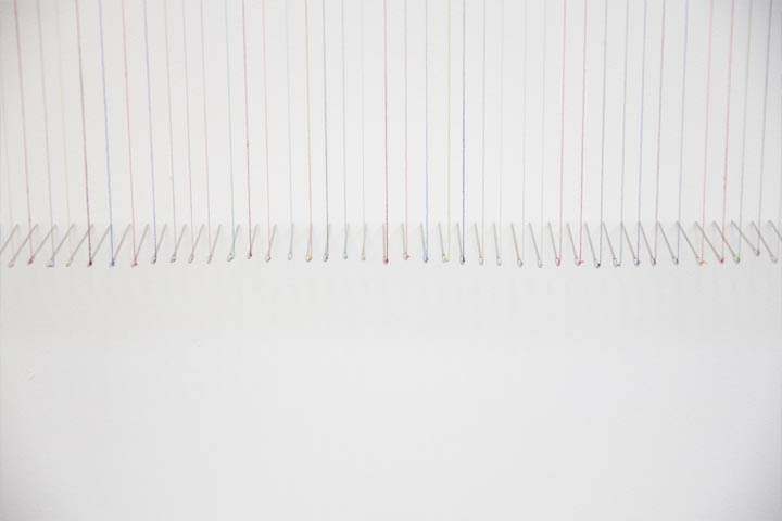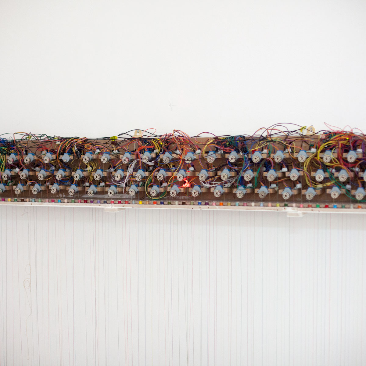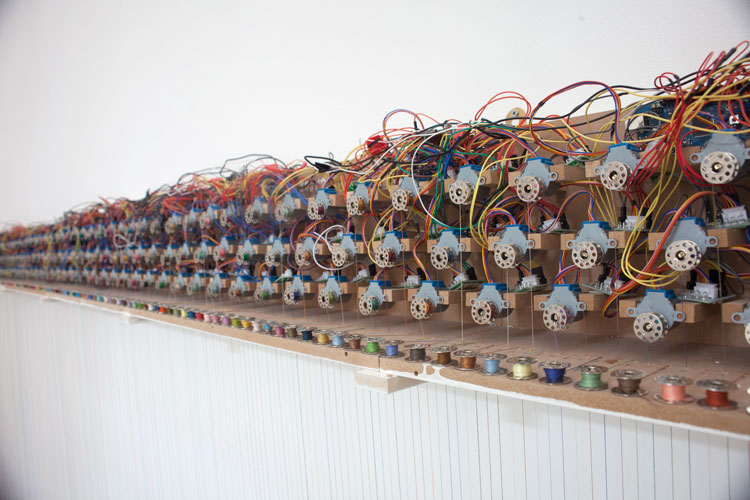 Ella consta de 365 motores que quitan de las paredes 365 puntillas unidas a 365 hilos de colores diferentes. Todos los materiales, con una excepción, son hechos en China.