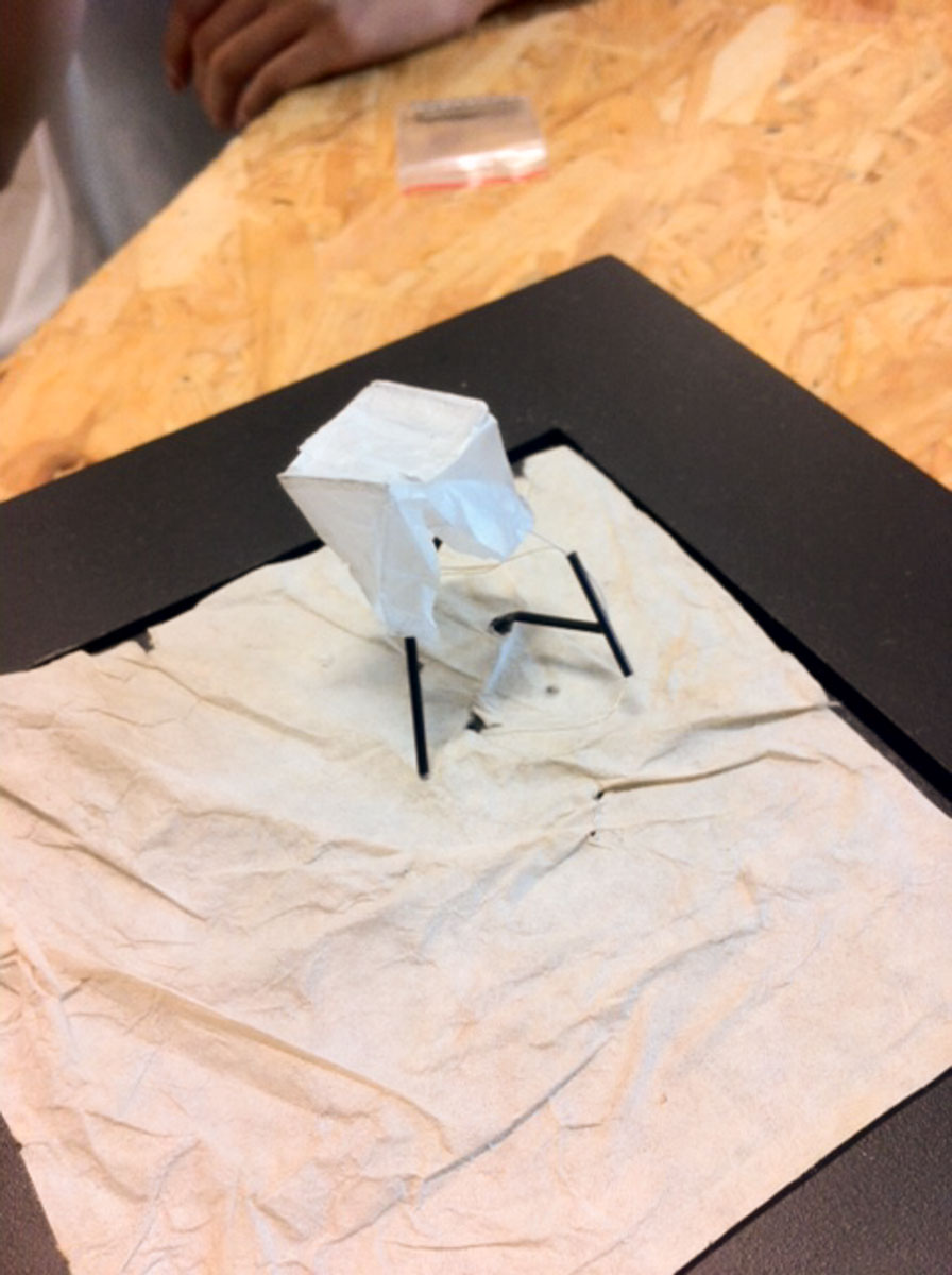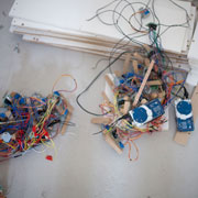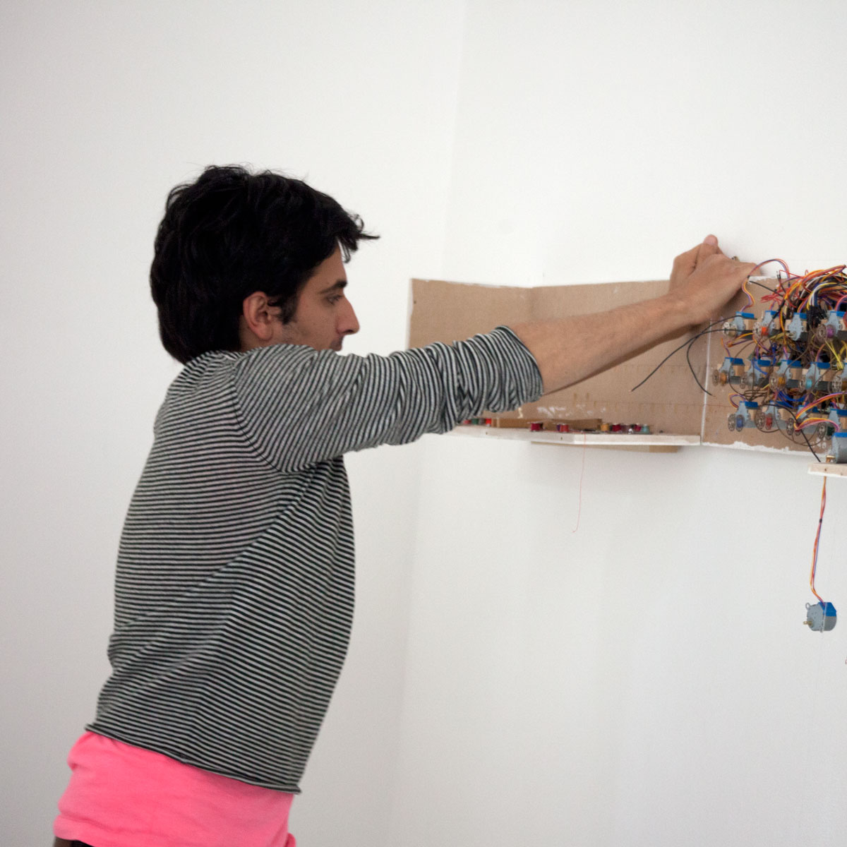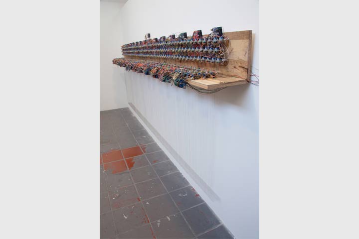 El elemento foráneo es un microcontrolador italiano que le da pulsos a 28 controladores del mismo modelo que el italiano, pero hechos en China. Estos 28 microcontroladores les dan impulso en un orden aleatorio a uno de los 365 motores para que, gracias a un proceso de tensión, quiten una puntilla clavada en la pared.