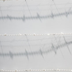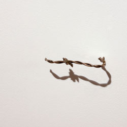 La primera 2 alambres de púas, uno enfrentado al otro, donde se cambiaron las púas por pájaros.