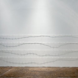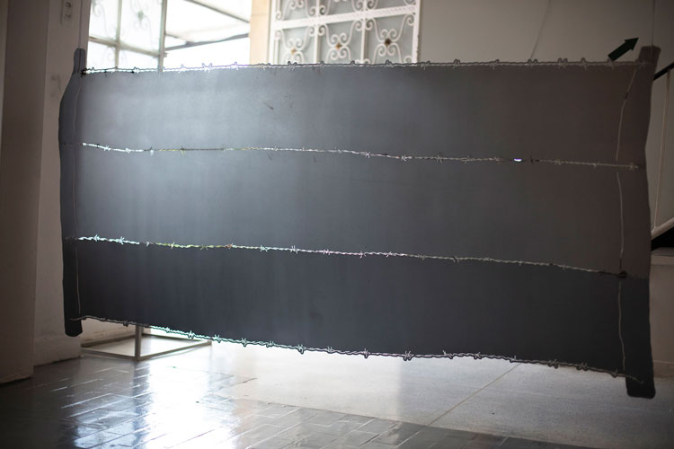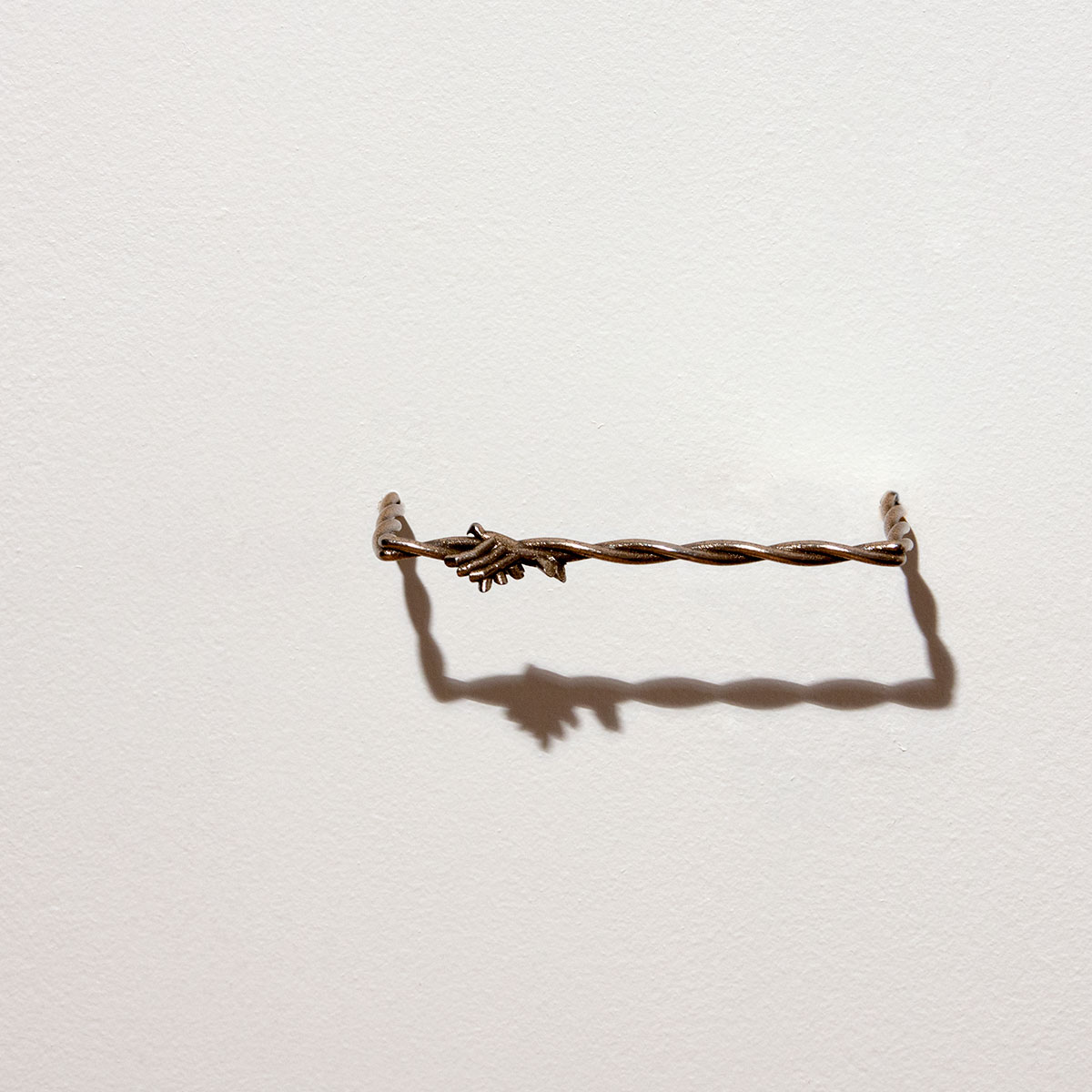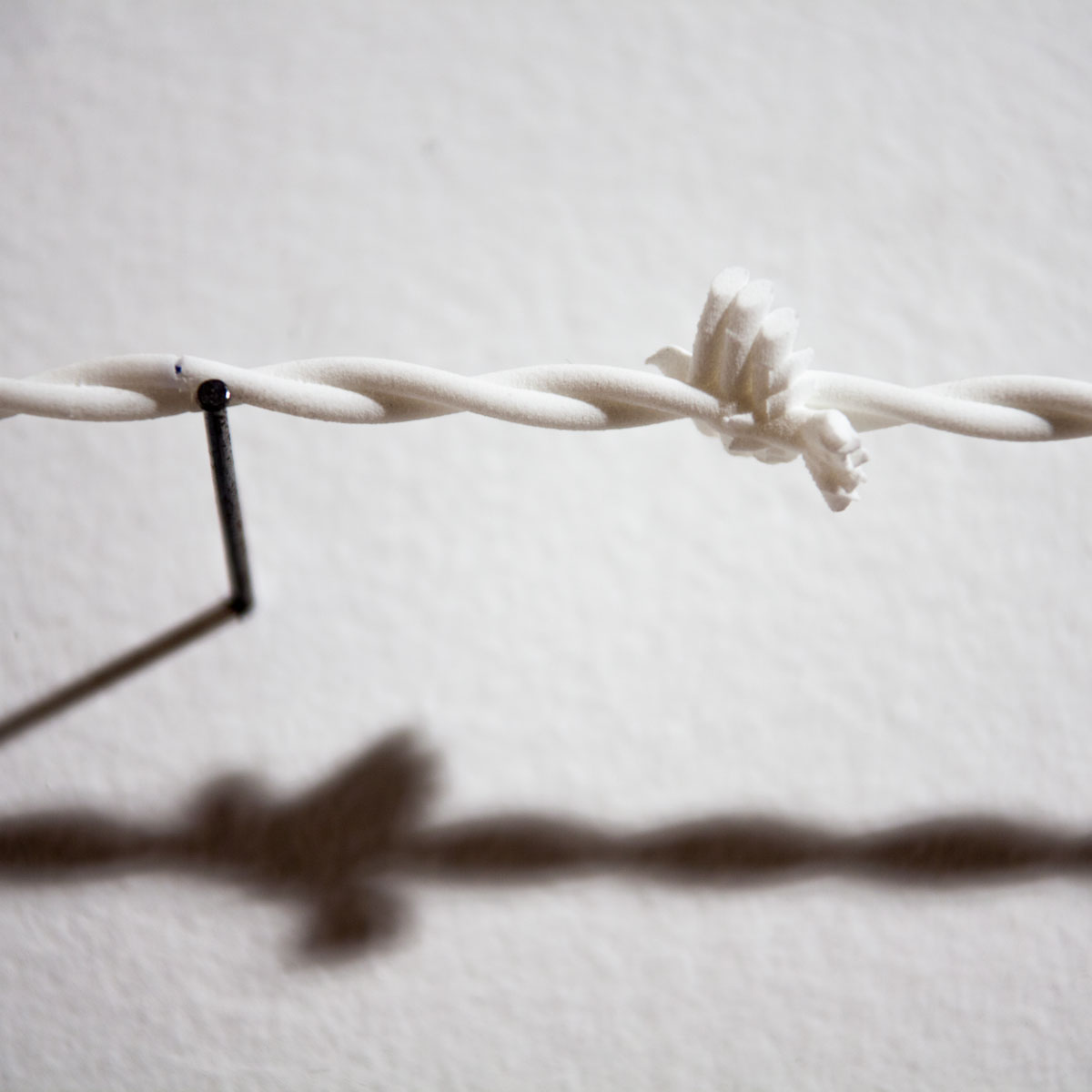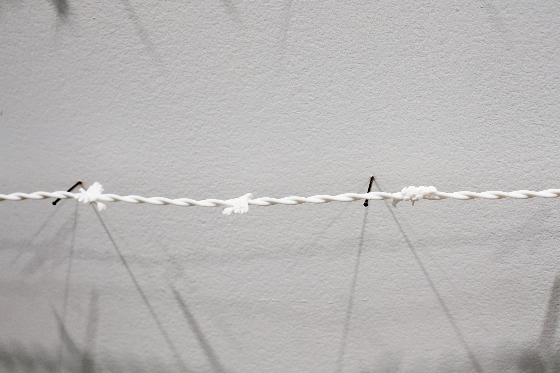 El primer alambre está hecho en nylon y de lejos recrea un cercado convencional, pero al acercarse está dividido en fragmentos únicos de 12 cm que encajan uno con otro, que pueden ser intercambiables, como un lego, sin alterar del todo el alambrado.