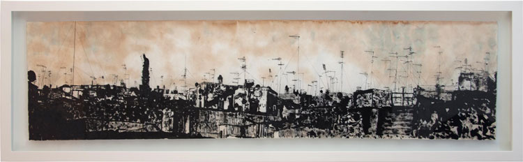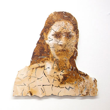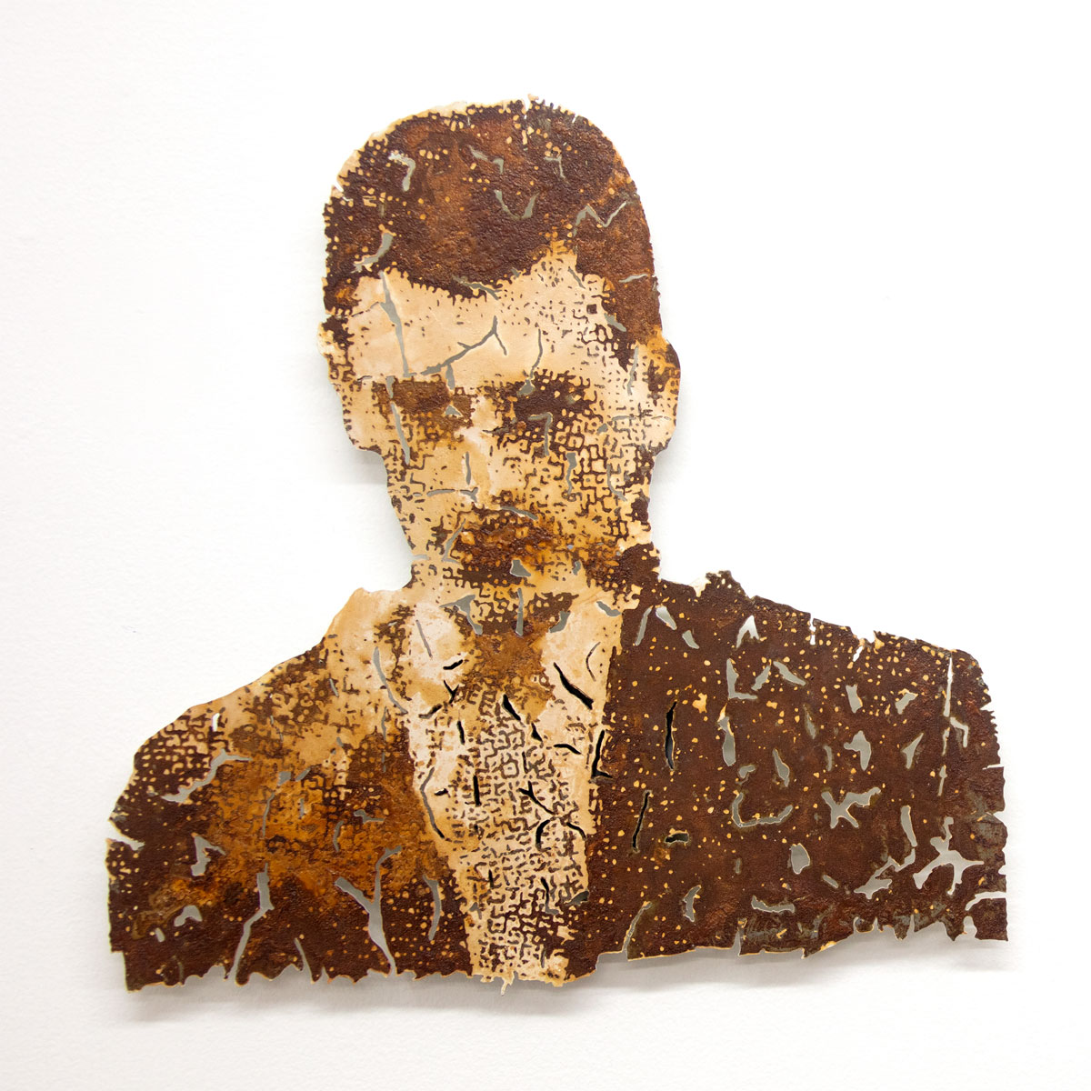 Estos dibujos los rompo y los reconstruyo para regenerar la imagen que finalmente se plasmo en hierro y se oxida. No paro el proceso de deterioro para que se siga desapareciendo la imagen con el tiempo.