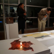 El cirio se derritió esparciendo en la forma de mapa de Colombia, la riqueza (amarillo) mezclándose con los mares (Azul) generando la naturaleza (Verde) para terminar con sangre (Rojo).