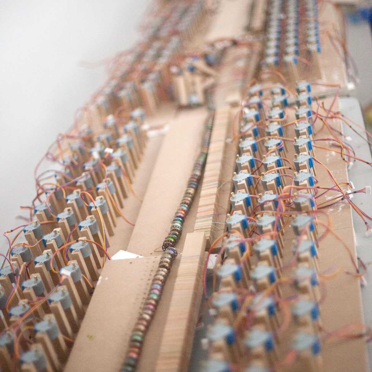 La máquina se volvió a construir para que fuera un proyecto definitivo y se cambiaron varios aspectos. Las puntillas se convirtieron en agujas (era más coherente con el carácter plástico de la obra), se cambiaron los 28 microcontroladores a 30 (acercándose más a los promedios de días por meses) y se replanteó el tener que destruirla cada vez que se mostraba.