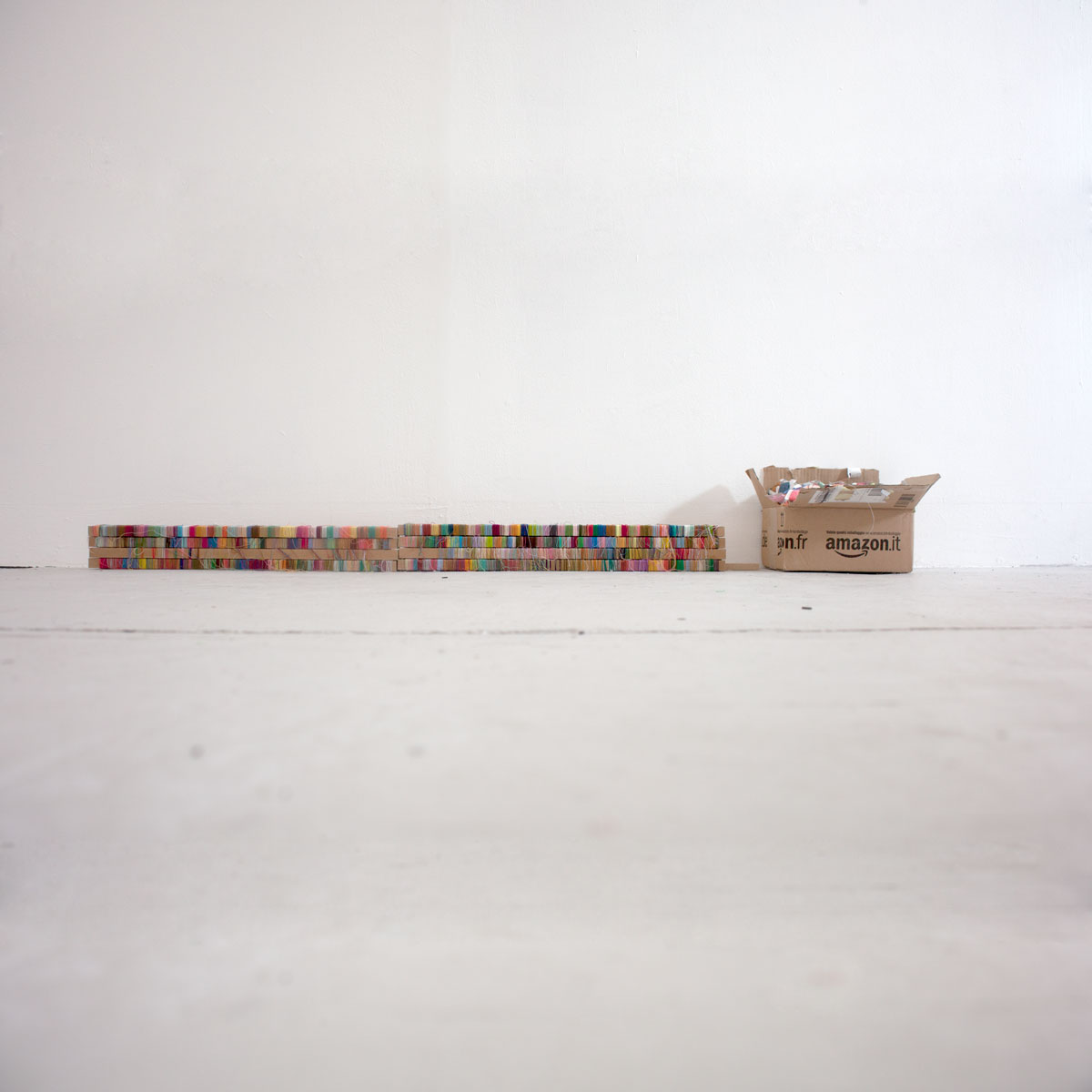 Por otra parte, asocié el mecanismo de la deriva que hago de manera personal a lo que hacen las estampillas, donde recorren el mundo sin camino fijo y exploran nuevos andares. Cada estampilla facilita el trayecto de emociones y noticias nuevas. Estas están en vía de desaparición, como también lo está cada vez más el acto de disfrutar elementos mínimos, como el hecho de derivar sin motivo real en el mundo.