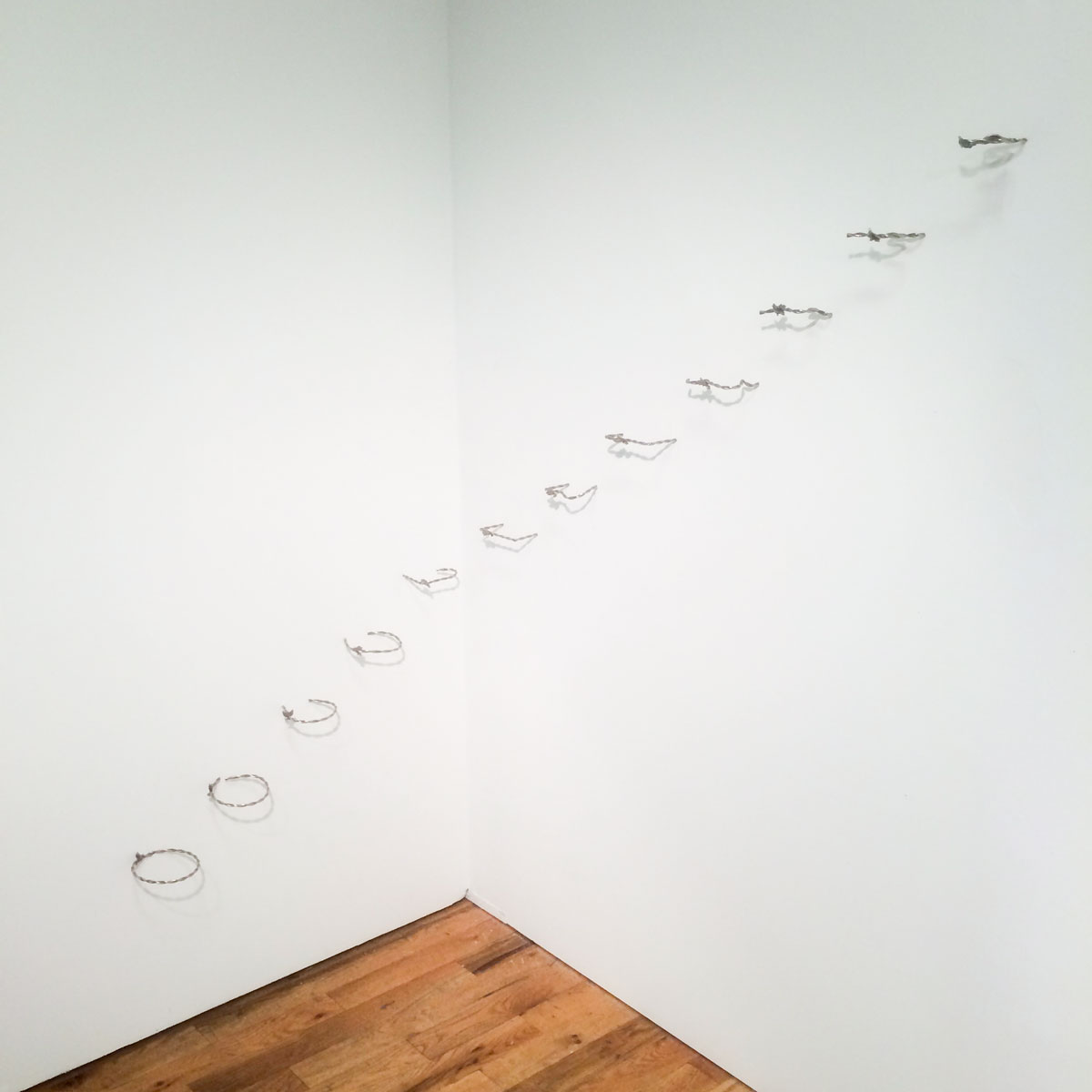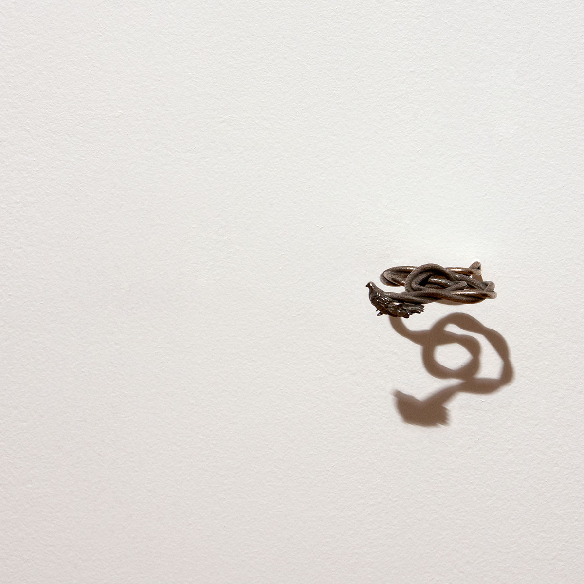 La segunda parte de la obra son fragmentos de acero con la trayectoria del vuelo de un pájaro, con dos finales diferentes.